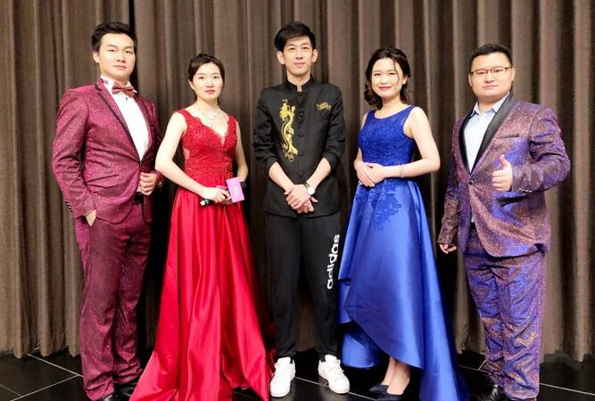 杨兴莉女士(左一)作为本次庆典晚会主持人