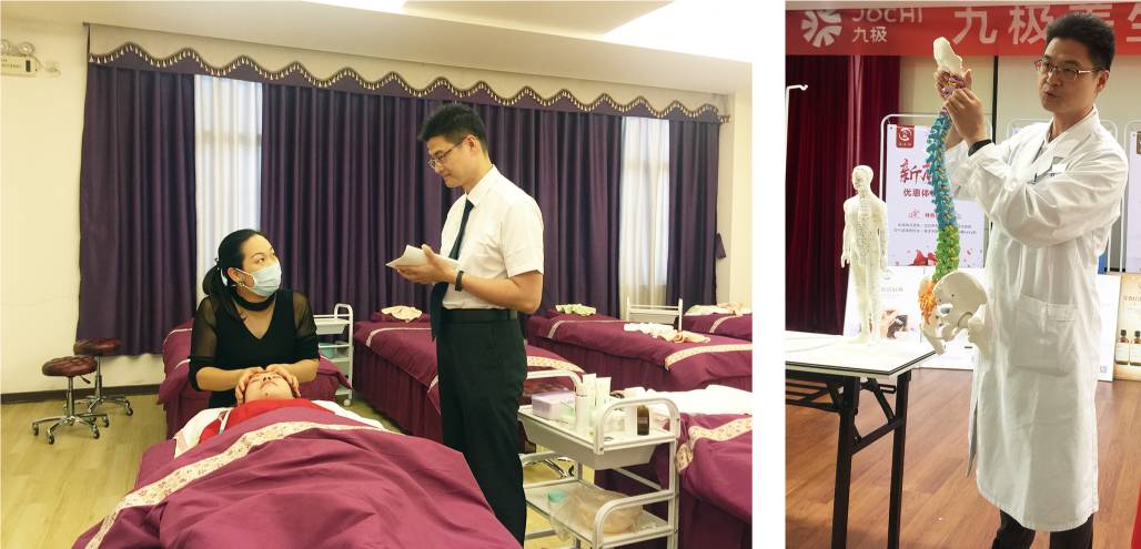 对于养生馆的运营,宁水生也早已了然于胸——项目整体输出,公司对店长进行统一规范的培训,定期进行考核。在刚刚结束的第一期培训中,就邀请了广州医科大学康复理疗科教授潘广华以及高级美容养生导师为店长们授予详细的指导与专业的课程。此外,招聘有资质的技师,将养生馆统一在九极的这套手法和旗帜下,并对技师提供了九个层次的完善晋升机制,通过不断地回炉和学习,提升技师水平。