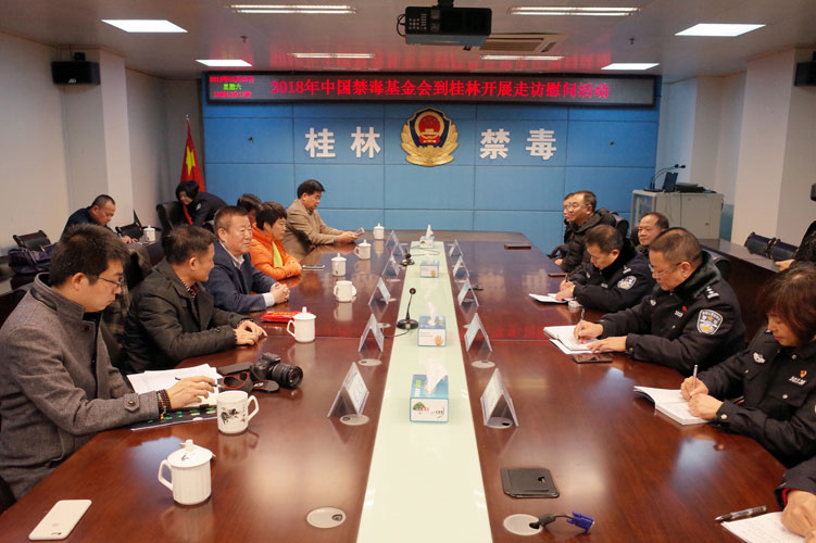 1月26日-27日,在中国禁毒基金会理事长(公安部禁毒局原局长)杨凤瑞的带领下,广西禁毒基金会理事长银延辉、副理事长罗炳军、欧德成专员及完美广西分公司何巧明总经理等一行七人,奔赴南宁、桂林、崇左等地开展慰问活动,慰问2名因公牺牲民警的家属及3名因公负伤的一线禁毒干警。