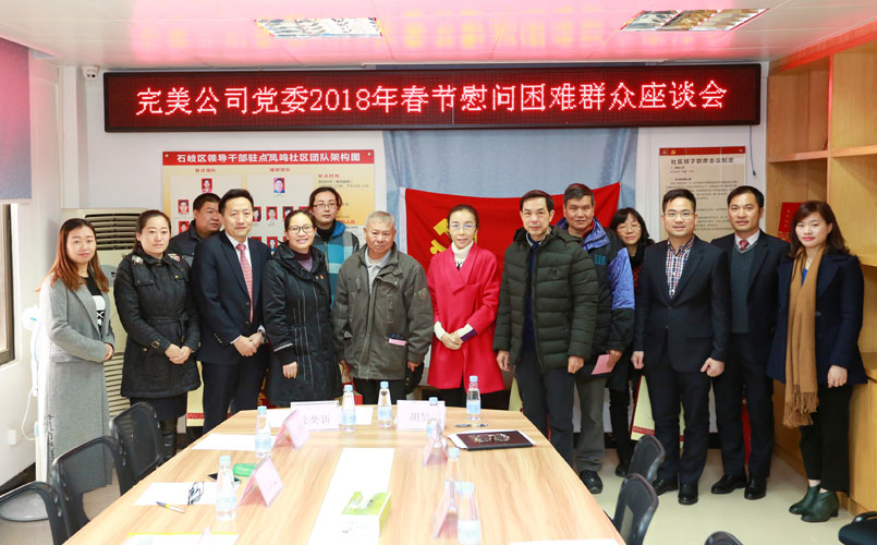 在新春佳节即将到来之际,2月2日,完美公司党委携手中山市石岐区党工委开展春节慰问活动。完美党委书记赵建红率党委、团委委员一行,深入石岐区15户贫困家庭进行慰问,为他们送上慰问金和完美产品礼包,带去完美的爱心关怀及节日祝福。