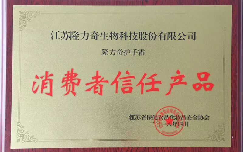隆力奇护手霜荣获“消费者信任产品”称号