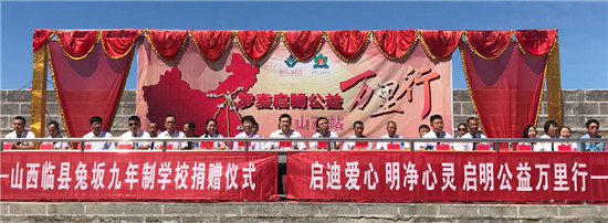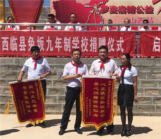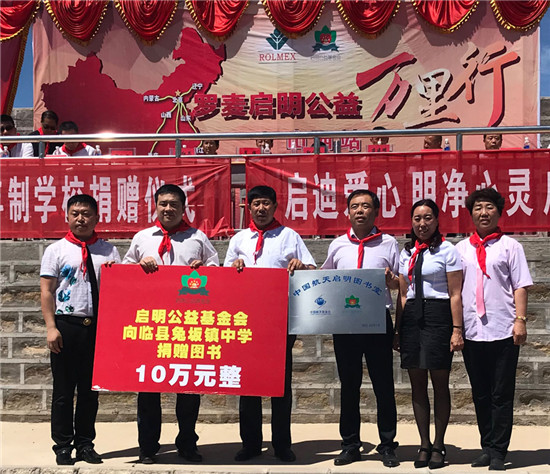 6月28日,“启明公益万里行——山西站”图书捐赠仪式在山西省吕梁市临县兔坂镇九年制中心学校拉开帷幕,启明公益基金会捐赠了价值10万元的图书,建立了“中国航天启明图书室”。