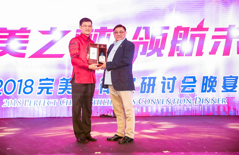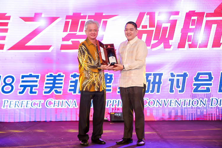 Arturo P. Boncato, Jr.代表菲政府向完美公司颁发感谢状
