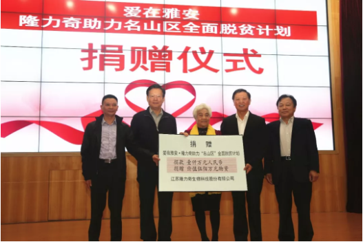 ▲隆力奇向雅安市名山区捐赠1000万人民币、500万元物资