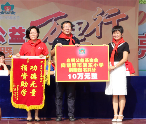“启明公益万里行——阅读点亮人生”捐书助学活动是启明公益基金会践行十九大关于优先发展教育事业的部署要求的重要举措。9月5日,该活动走进浙江省绍兴诸暨市,“启明公益万里行——诸暨站”图书捐赠仪式在诸暨市浣东小学的开学典礼上隆重举行,启明公益基金会捐赠了价值10万元的图书,“中国航天启明图书室”在浣东小学挂牌落成。