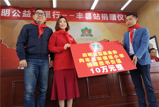 “启明公益万里行——阅读点亮人生”捐书助学活动,是启明公益基金会学习贯彻十九大精神,助力中国教育事业的真实实践。10月18日,该活动走进江苏省徐州市,“启明公益万里行——丰县站捐赠仪式”在徐州市丰县宋楼中心小学拉开帷幕,启明公益基金会现场捐赠了价值10万元的图书。