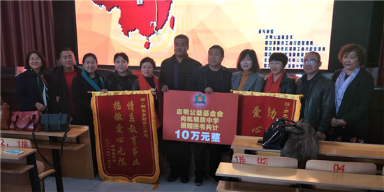 11月2日,“启明公益万里行——内蒙古站”图书捐赠仪式在鄂尔多斯市杭锦旗中学隆重举行,启明公益基金会现场捐赠了价值10万元的图书。
