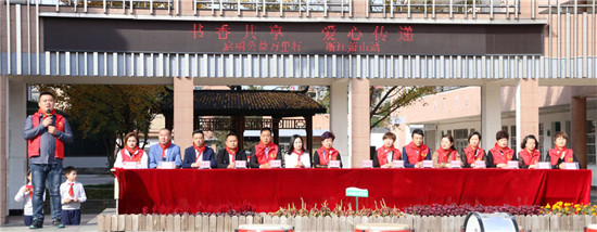 启明公益基金会浙江项目部夏海涛,爱心志愿者代表乔雁、黄玉玲、强海朋、汤华康、章丽娟、张红平、方彩霞、王桂芳、沈惠芳、黄晓燕等以及杭州萧山三星小学全体师生参加了捐赠活动。