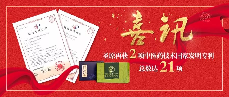 2018年11月国家发明专利局再传好消息,圣原“滋阴养肾的中药提取物及制备方法和应用”(专利号:ZL201510448269.0)、“具有祛湿功效的中药提取物和固体饮料及其制备方法”(专利号:ZL201510357842.7)2项中医药技术再次获得中华人民共和国国家知识产权局颁发的发明专利证书。至此,圣原已手握21项中医药发明专利。