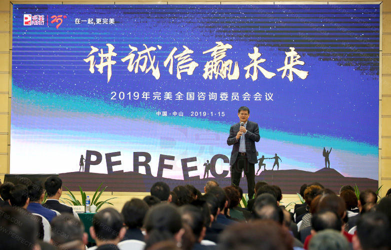 1月15日,新年伊始,2019年完美全国咨委会在广东中山金钻酒店圆满召开,许国伟副董事长、胡瑞连副董事长出席会议。本次活动围绕“讲诚信,赢未来”主题,来自全国各地的完美咨委共聚一堂,聆听完美大学第一课,在合规经营的基础上,谋发展、促跨越、赢未来!