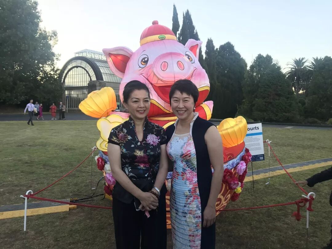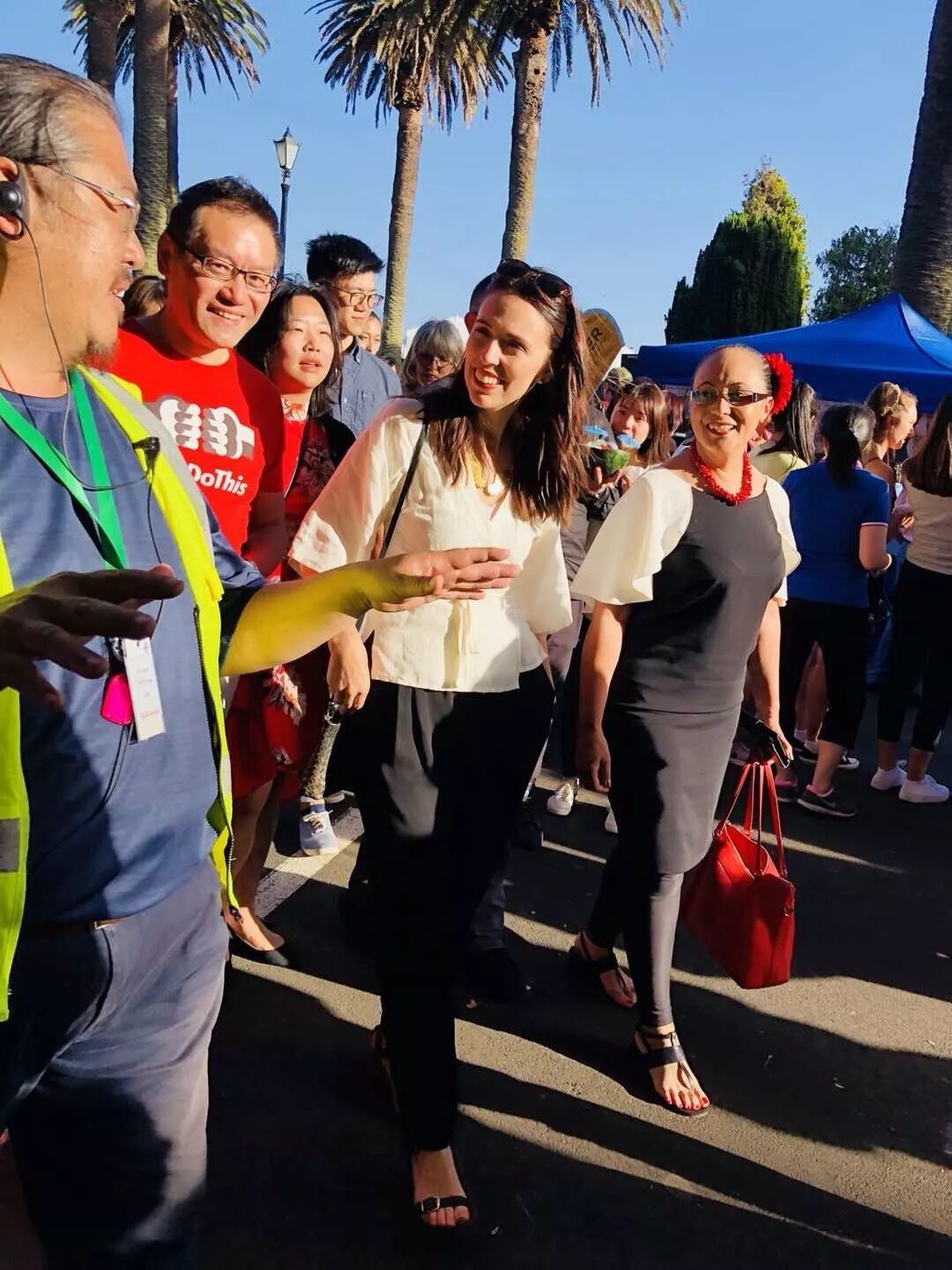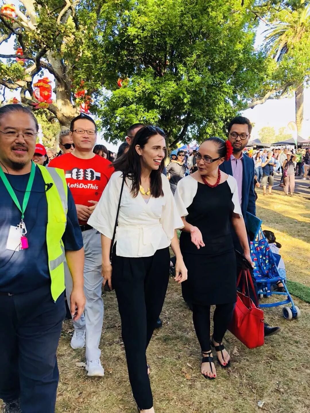 灯会首日,新西兰总理杰辛达·阿德恩在民族事务部长珍妮•萨莱萨陪同下,出现在元宵灯会现场。一只真人扮演的红色小猪全程开路,在总理身旁不时摆出各种卖萌动作。一身休闲装扮的杰辛达总理不时停下脚步,和身边的华人群众合影,向华人们拜年并且祝贺元宵快乐。
