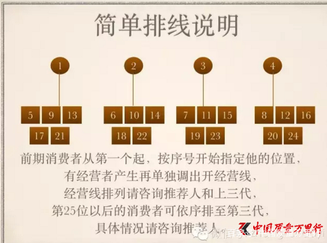 记者在一个微信文章写着“本文仅限内部学习参考,严禁外传”看到,美乐家奖金制度如下设计:除开第一次指定是免费的以外,从第二次起再申请调线都需要收取一定的费用。如果你要调整A,A底下分别挂着B、C、D,B是A自己的亲推,C、D是你的亲推,那么挪动A时,B必然是跟着A被调走,但是C、D客服则会询问你是否跟着走,你可以选择让他们留在原地补位,或是跟着被带走。这时候A就叫主调,C、D如果跟着走就叫辅调。排线的收费为主调每个270元,随之带走的辅调每个收费90元。一个人底下若连同他自己超过10位会员,则终身无法再被挪动,所以挪线一定要及时,否则遇到逾期挪不动的话哭都来不及。
