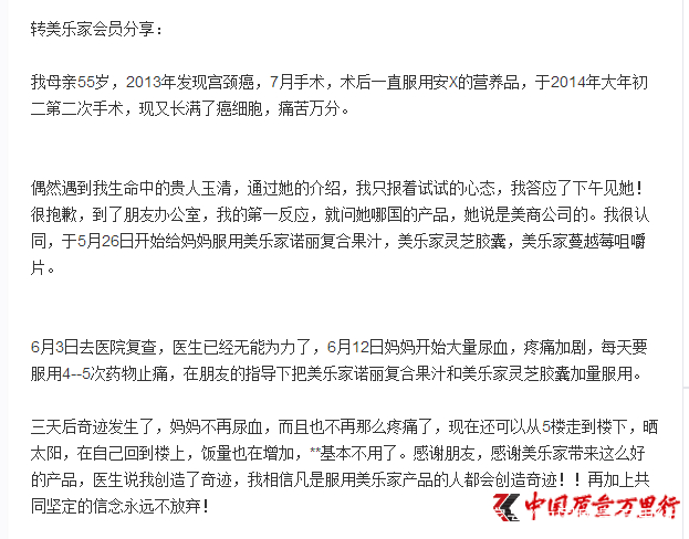 美乐家经销商夸大宣传保健品功效遭消费者投诉