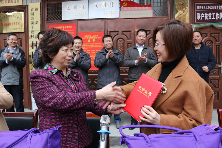 3月7日,在“三八”国际劳动妇女节来临之际,完美陕西分公司随同陕西省人大常委会机关党组成员、副秘书长、扶贫团团长井剑萍,一同走进镇安县青铜关镇丰收村,开展“关爱母亲·助力脱贫攻坚”活动。此行,陕西分公司为镇安县青铜关镇丰收村捐赠母亲邮包,带去节日问候和美好祝福。陕西省人大常委会办公厅授予陕西分公司荣誉证书,感谢完美人用实际行动支持扶贫工作的善举。