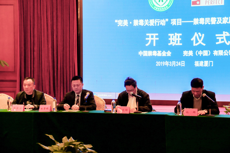中国禁毒基金会副理事长陈存仪,中国禁毒基金会秘书长李宪辉,福建省禁毒办副主任、省公安厅禁毒总队政委游文杰等领导出席活动。完美福建分公司总经理林肇鹏代表公司出席第二期开班仪式。
