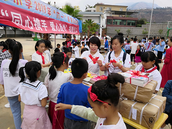 5月31日,云南省市场监督管理局、昆明市东川区政府、区教育系统携手完美云南分公司等五家企业,为东川区尼拉姑小学送去了图书、文具和体育用品,助力脱贫攻坚,提前给孩子们过“六一”儿童节。其中完美捐赠图书1800册,价值四万元,用于丰富“完美爱心书屋”的藏书。