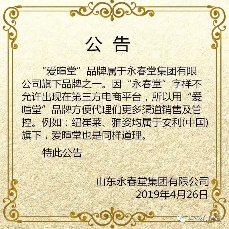 2019年4月26日,永春堂为方便销售和管理把永春堂洗出彩改名为爱暄堂洗出彩,并发出了“纽崔莱之于安利”同理“爱暄堂之于永春堂”的言论。