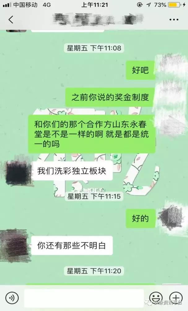 那么,这是否说明了这家企业和这个产品真的只是挂靠关系呢?经销商小李对此表示肯定,“爱暄堂洗出彩项目与山东永春堂集团有限公司只是合作关系,产品挂的是公司的牌子,并且该洗出彩项目的奖金制度也是独立一个板块存在。”