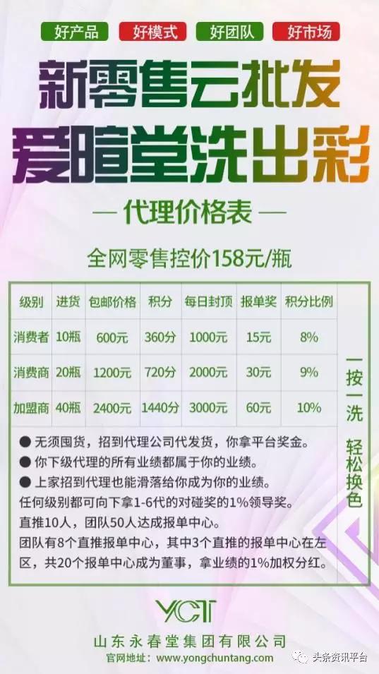 而在最近,据宣传一款仅通过洗发的方式就能轻易实现发色转换的染发神器悄然间出现在不少人的朋友圈里,这个名为“永春堂洗出彩”的产品究竟有多神奇?还是说,更加神奇的不是产品本身,而是其代理奖金制度呢?随着洗出彩的问世,一些关于“爱暄堂涉嫌挂靠永春堂”的质疑声也相继出现,这是怎么回事?