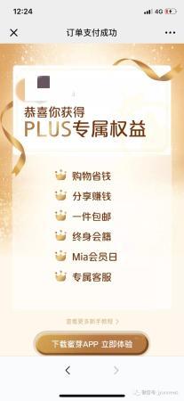 小汪碍于情面只好答应,他扫描小A出示的一张二维码图片,下载了蜜芽App,还购买了一款超过399元的商品,因此成为了Plus会员。