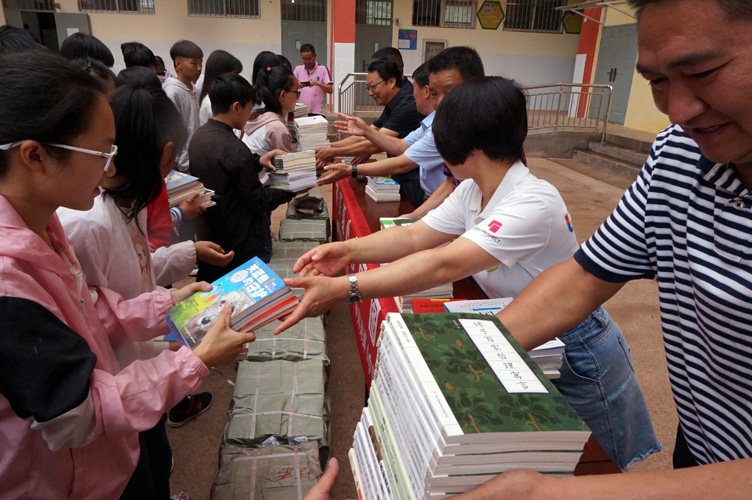 7月5日,云南分公司党支部携手曲靖市市场监督管理局,到曲靖会泽县上村乡中学举行“完美爱心书屋”图书捐赠活动,为当地中、小学捐赠价值10万元图书1万余册,助力上村乡脱贫攻坚。