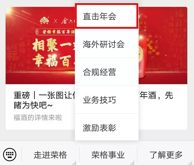 没有到现场的家人们只要您关注“荣格微刊”公众号,点击底部菜单栏“荣格事业”,再点击“直击年会”,在弹出的页面中点击“进入图片直播”,就可以实时回顾盛典现场精彩盛况啦!