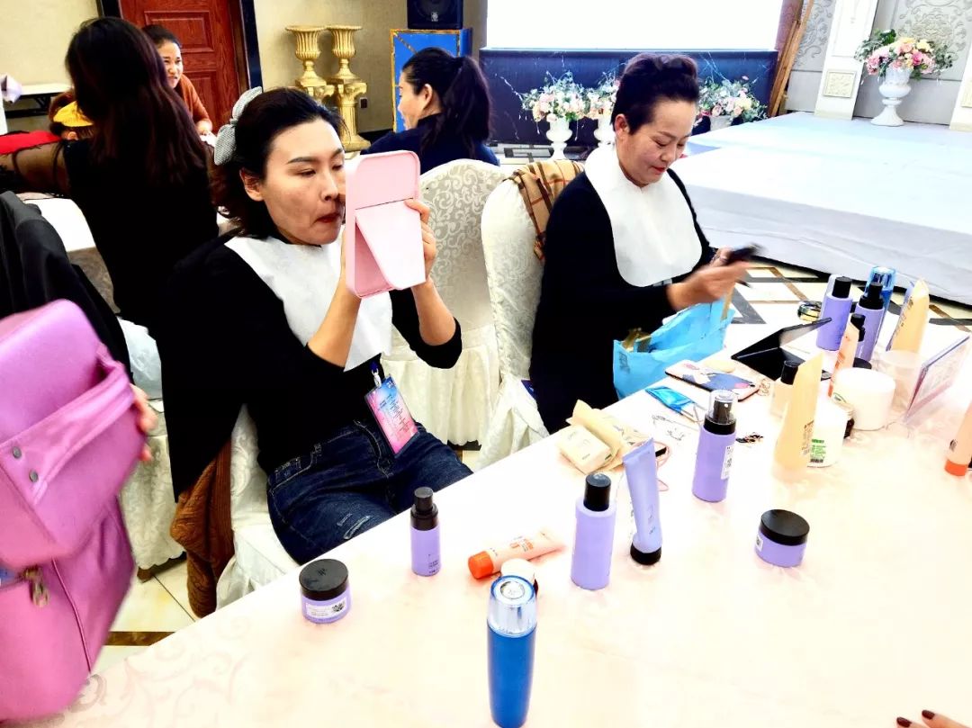 在体验增业绩环节里,大家对美容手法求知若渴,跃跃欲试,并互相练习手法,展现出荣格人优秀的精神风貌!通过亲自体验与讨论,学员们很快就掌握了销售技能法宝——产品体验的重要性。