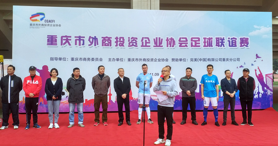 11月9日,由重庆市商务委员会主导,重庆市外商投资企业协会主办的重庆市外商投资企业协会足球联谊赛顺利举办。出席本次活动的领导有重庆市商务委员会副主任熊林,英国驻重庆总领事馆副总事Daniel Rothberg,完美重庆分公司总经理冷涛应邀为本次活动致辞。来自重庆市20余家外资企业代表队参加了本次比赛,约200余人经过精彩角逐,最终收获健康与友谊。