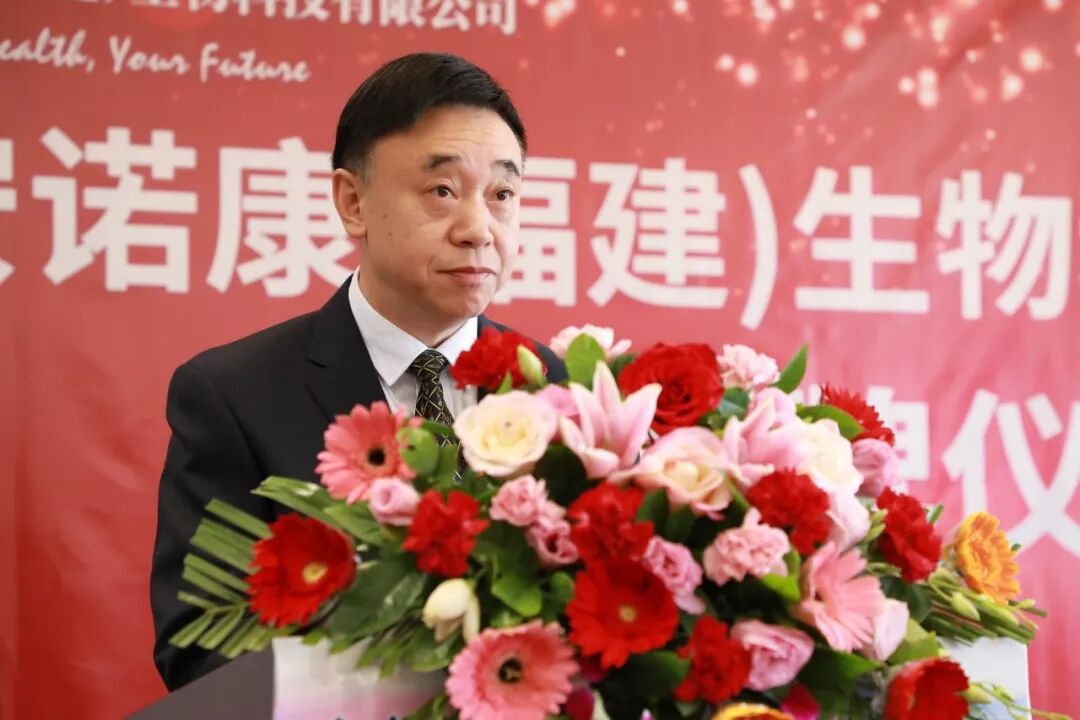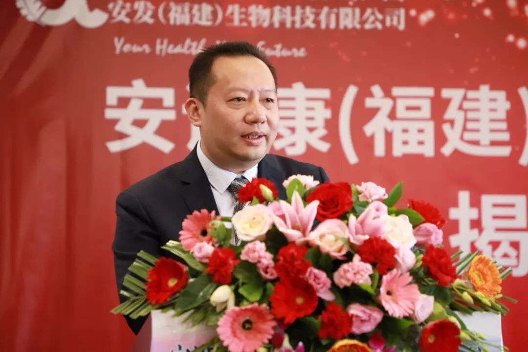 ▲安诺康(福建)生物科技有限公司董事、总经理徐孝卫先生主持揭牌仪式