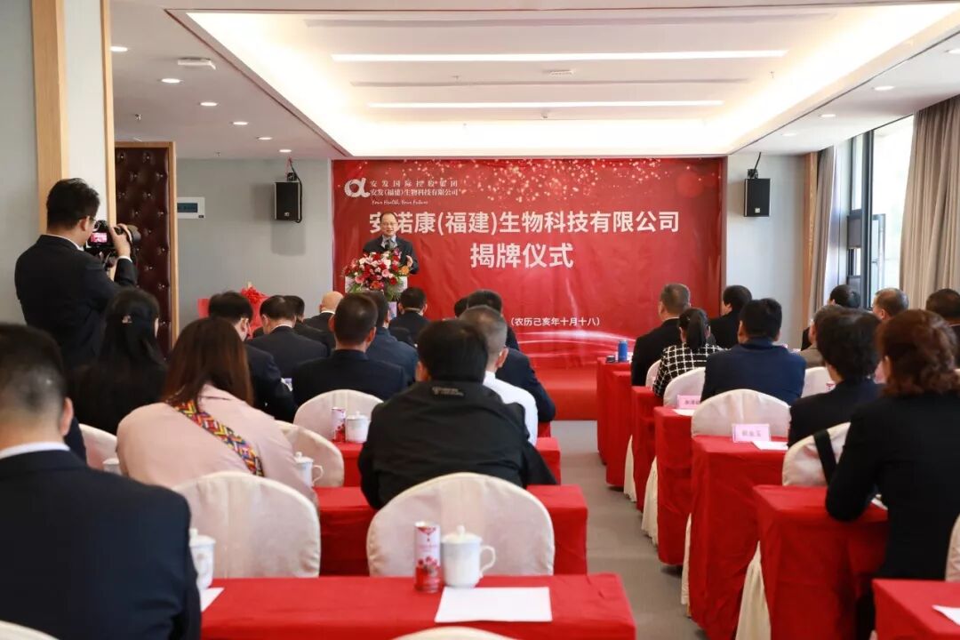 开张呈喜,无边秋色融融乐!举业有方,不尽财源滚滚来!2019年11月14日,农历己亥年十月十八日,在这秋风送爽、瓜果飘香的金秋时节,安发(福建)生物科技有限公司旗下致力于以道地资源精深开发的科农工贸服为一体的农源型高科技企业——安诺康(福建)生物科技有限公司揭牌仪式,在福建省古田县新世茂酒店五楼会议室隆重举行。会场鲜花争艳、展板鲜艳、宾朋满座,气氛喜庆非常。