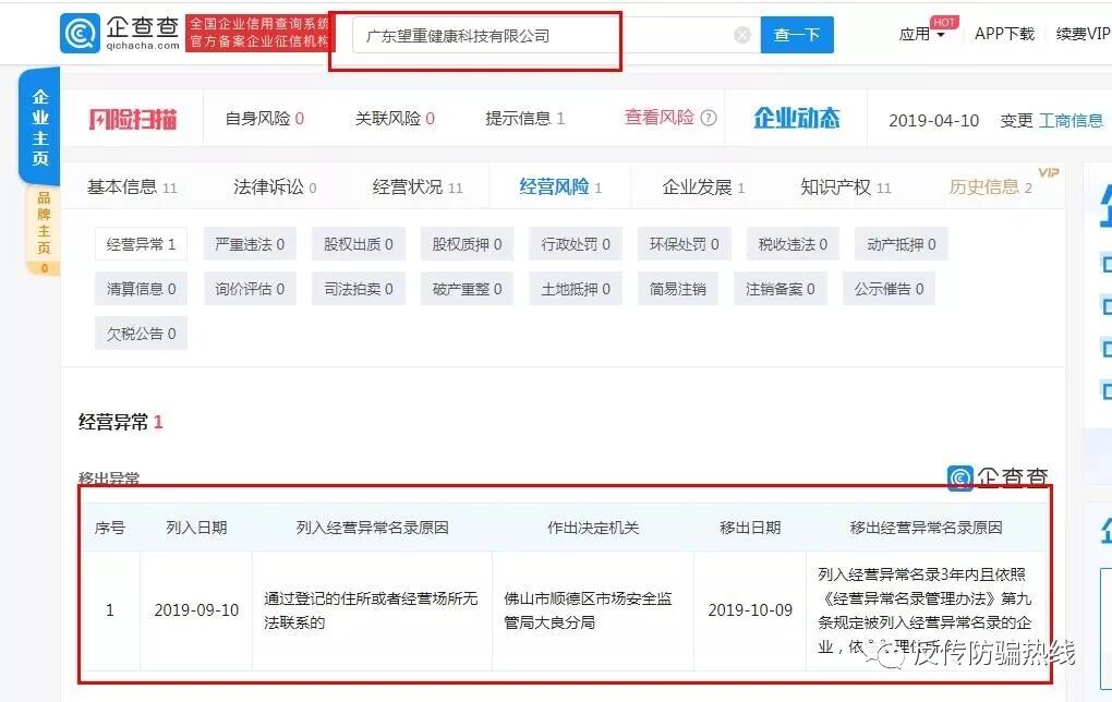 公开资料显示,广东望重健康科技有限公司于2018年5月8日成立,注册资金是2000万元。