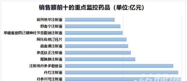 在销售额排名前十的重点监控药品中,中药注射剂占了七席,其中,丹参川芎嗪注射液、丹红注射液、注射用丹参多酚酸盐居前三。丹参川芎嗪注射液:主要成分为盐酸川芎嗪、丹参素,适应症为闭塞性脑血管疾病,有两家企业生产,分别是吉林四长制药与贵州拜特制药。