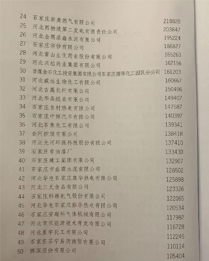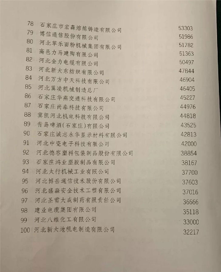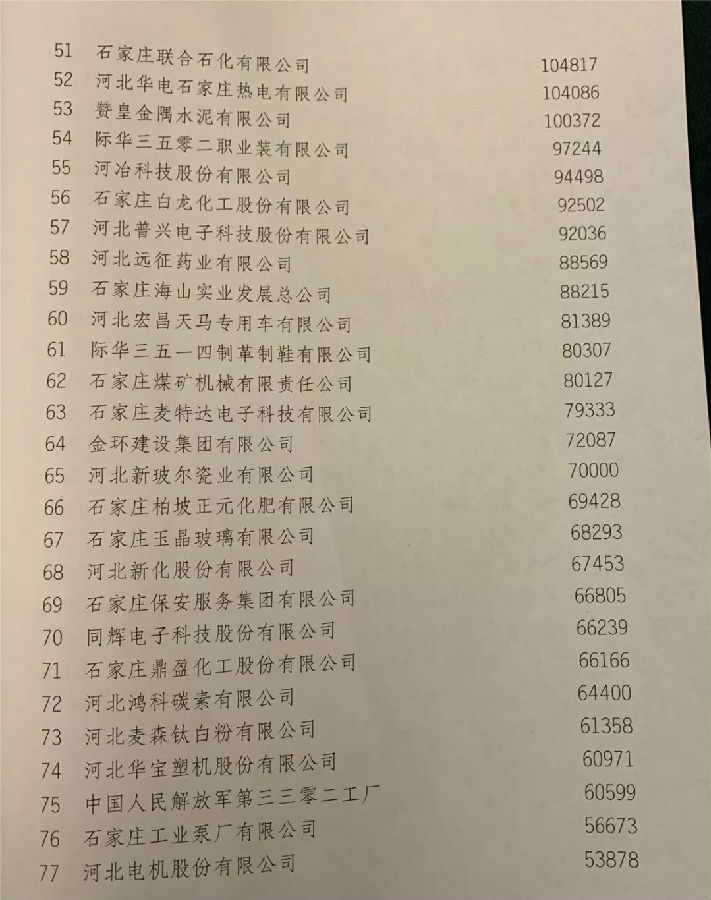 2019石家庄市企业100强名单