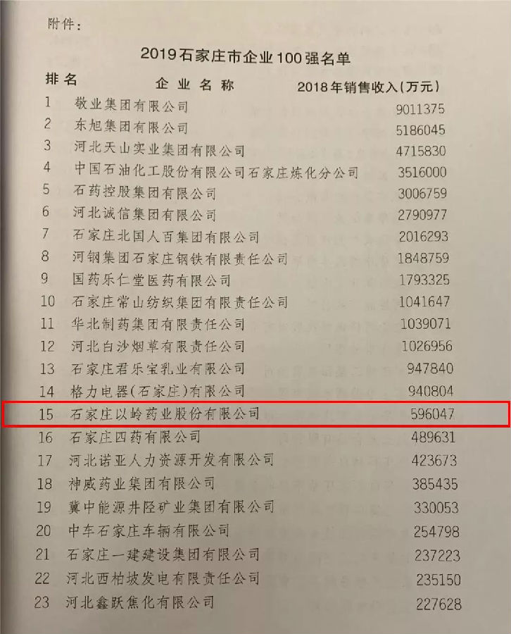 硬核实力!以岭药业荣登石家庄市百强企业第15位