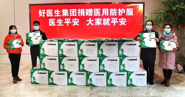 2月11日,好医生集团通过四川省红十字协会向四川大学华西医院、四川省人民医院、成都中医附院(四川省中医医院)、凉山州第一人民医院定向捐赠一批LakeLand 防护服。四川省红十字协会代表出席捐赠仪式,四大医院在现场领取了本批捐赠物资。