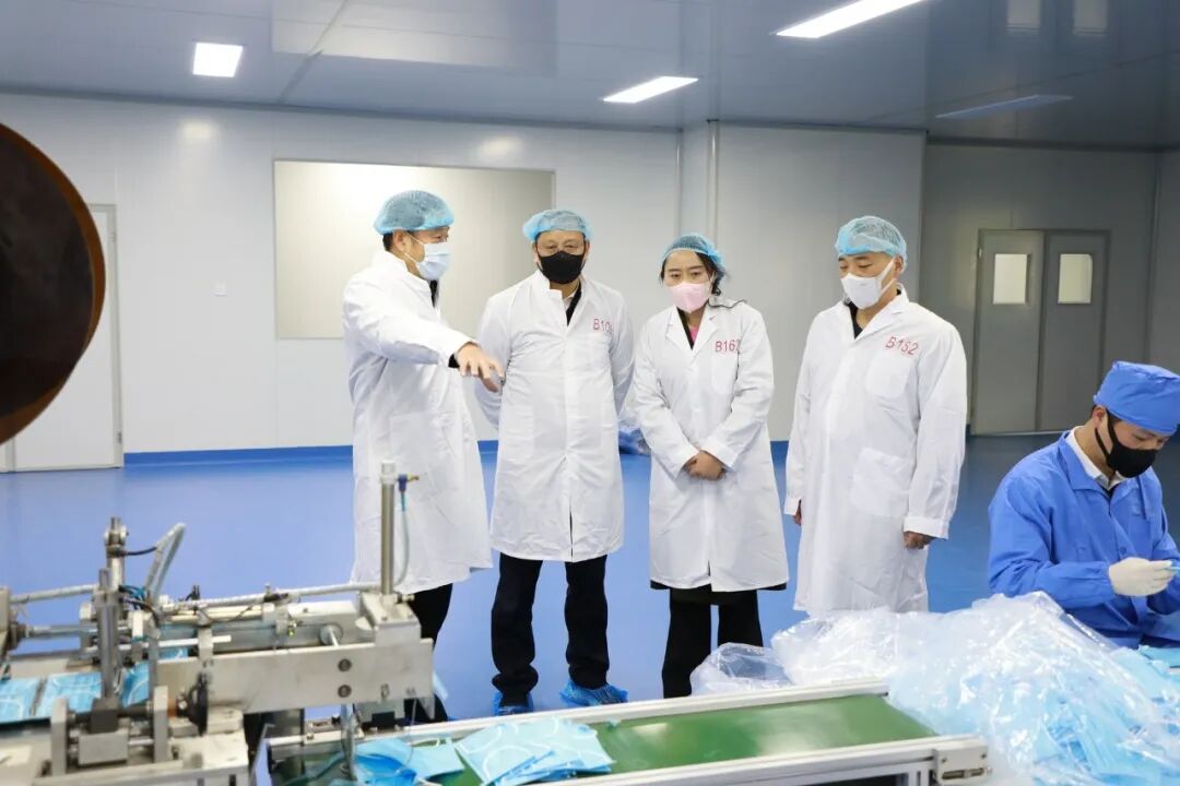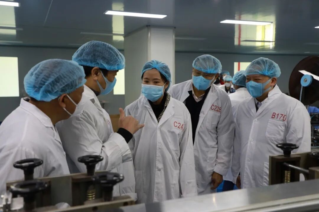 当天下午,宁德市市长梁伟新继2月19日的调研后,带领市政府办主任绍明松、东侨管委会主任罗义春再次莅临安发(宁德)生物科技园,对口罩生产线正式投产表示祝贺,并指导工作。