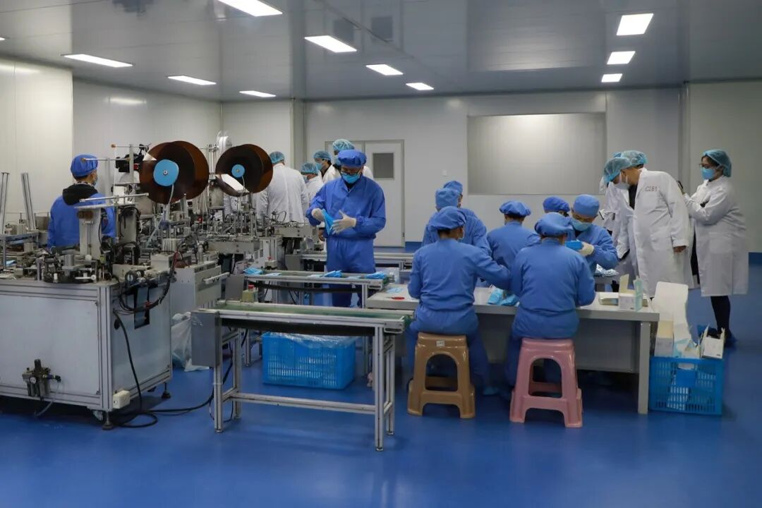 投产仪式结束后,参加仪式的领导和来宾实地参观了口罩生产车间。大家在现场看到,从装料、加鼻梁条、点耳带、包边等各项工序井井有条,做好的口罩还要经过人工分拣,确保了口罩产品的质量。