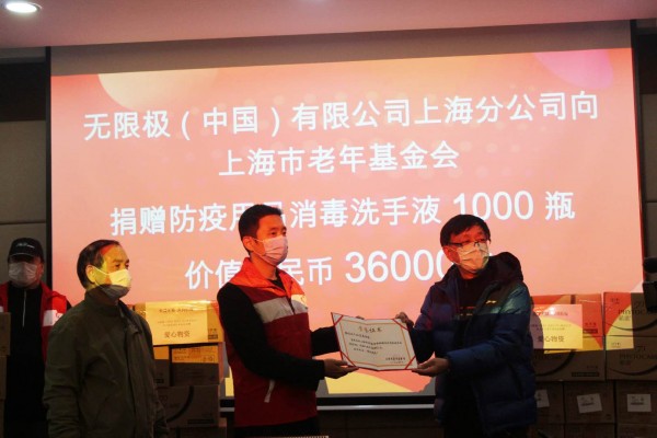 近日,无限极(中国)有限公司上海分公司(以下简称“无限极”)通过思利及人公益基金会向上海市老年基金会捐赠1000瓶总价值36000元的洗手液,送予各区部分养老机构的老年人及护理人员防疫之用。