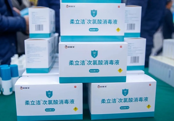 可以看到,消毒装置灌入柔立洁™次氯酸消毒液运作后,源源不断地喷出雾化后的消毒水对空气进行消毒,为好医生员工提供消毒服务。据专业人员介绍,一般含氯消毒剂适用于医疗卫生机构、公共场所和 家庭的一般物体表面、医疗器械、医疗废物、食饮 具、织物、果蔬和水的消毒,也适用于疫源地各种污染物的处理,但不适宜用于室内空气、收、皮肤和黏膜的消毒。次氯酸消毒剂除上述用途外,还可用于室内空气、二次供水设备设施表面、手、皮肤和黏膜的消毒,消杀后无残留,美国FDA核准为:可用作食品添加物的消毒剂,是国家工信部《疫情防控重点保障物资(医疗应急)清单》和国家卫健委历版《新型冠状病毒肺炎诊疗方案》优先推荐消毒产品,可广泛用于养老机构、学校等消毒。