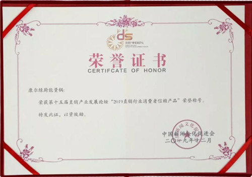 2019年直销行业盛典,康尔绿厨能量锅揽获“2019直销行业消费者信赖产品”殊荣,实现口碑和荣誉双“加冕”。