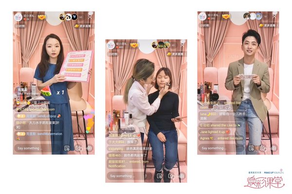 由爱茉莉太平洋的员工志愿者组成的公益主播团与网友们在线交流美妆与健康心得