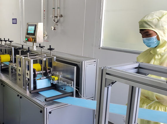 好医生口罩生产线采用更严苛的流程和标准,为当地学校复学和此次省两会的召开提供了有力的防护安全保障。全自动化的高速口罩生产线是现目前国内较先进的医用口罩生产线,从原料到成品实现全自动生产,生产速度高达每分钟600个,能够快速高效的产出高质量的口罩。口罩车间按十万级洁净级别建造,引进了国内先进生产设备和工艺流程。