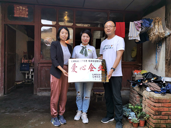 晋宁区宝峰街道党工委副书记乔昆为完美云南分公司颁发“爱心企业”荣誉牌匾,感谢完美公司的爱心善举。同时,她也邀请分公司党支部到宝峰街道开展“双联双建”活动,携手推进形成城乡互动、党群互动的党建新格局。