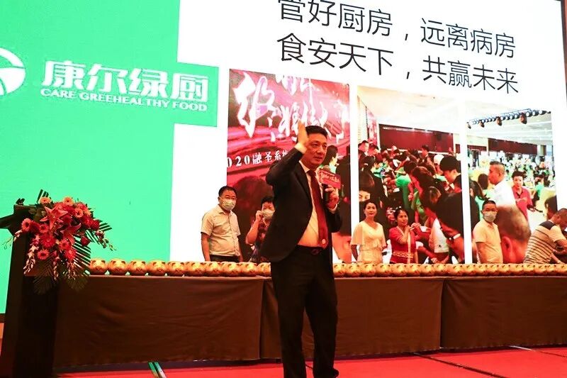 青岛康尔生物工程有限公司副董事长、总裁陈红女士就“康尔多措并举不断优化项目、升级店铺职能并深耕店铺、加大科研投入、优化产品结构、基地溯源之旅严苛把控产品品质、保障终端配送、做好模式升级、产品升级、品牌升级、服务升级,从而保障大众吃的安全、吃的放心、吃的实惠”倾情分享,并表示绿厨事业将通过中国安全食品进万家工程推向千家万户。