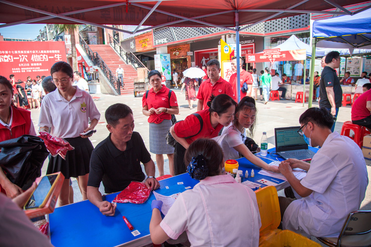 “你的一次,他的一生”,8月23日上午,第十七届完美百城千店万人献血活动——湖南站在郴州市启动,郴州市中心血站一大早便组织志愿者协会成员为此次活动做准备。120余名从郴州各县市区及永州、衡阳等地赶来参加活动的经销商及顾客纷纷撸起袖子奉献热血。