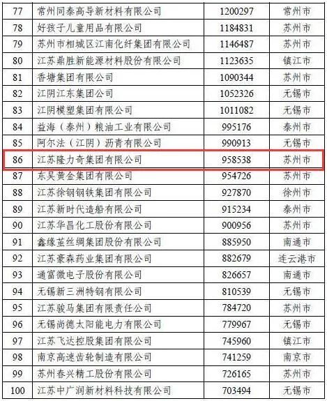 隆力奇跻身“江苏民营企业制造业100强”