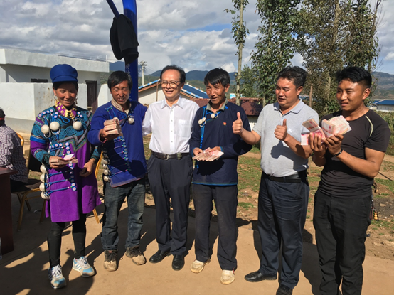 全国人大代表、好医生集团董事长耿福能,带着对火灯村彝族同胞的牵挂和关爱之情,以勇于担当的社会责任感在活动现场组织指导各项活动的开展,并亲自为附子种植大户发放现金、为建档立卡贫困户捐赠生产生活物资。当天,还深入田间地块亲自向农民耐心细致地讲解培训中药材种植的土地整理、选种育苗、适时播种、施用底肥、除草浇水、修根打尖抹芽、田间管理和收割采挖等科学技术,手把手教授农民如何掌握大田耕作方法和栽培技术,鼓励他们扩大生产,增加产量、稳定质量、提高收入水平。当天现场收购附子发放现金10多万元,捐赠生产生活物资价值15000多元,参加种植技术培训的人员达150多人。活动现场气氛热烈、群情激奋、学习热情强烈,生产积极性高涨,受到当地干部群众的热烈欢迎和高度赞许。