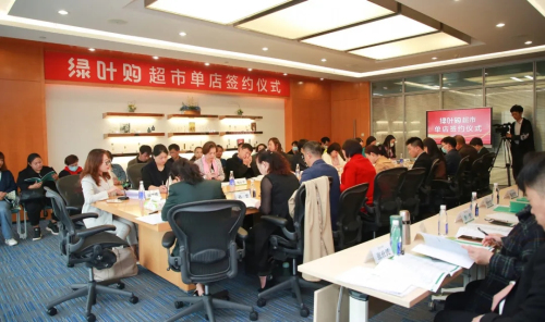 激动人心的单店签约仪式环节正式开启,在全体与会人员的共同见证和镜头的记录下,徐建成董事长作为绿叶购超市项目创始人,与现场29位老板依次隆重签署单店协议并留下珍贵的合影。