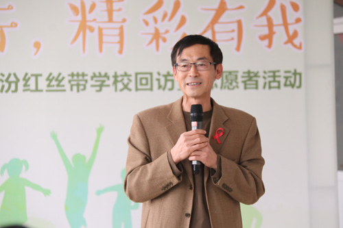 在此次活动中,古润金对红丝带学校校长郭小平和老师们的辛勤付出表达了敬意,表示希望此行能唤起社会更多力量投身关爱行动,减少社会歧视,让红丝带飘扬在孩子们的心上,引领他们走向新生活。
