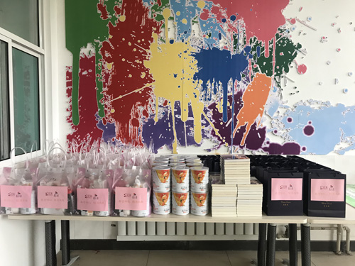 活动尾声,孩子们把精心准备的自己的绘画作品作为礼物,送给参加这次志愿活动的古润金、朱迅、中国青基会及共青团山西团系统的代表。